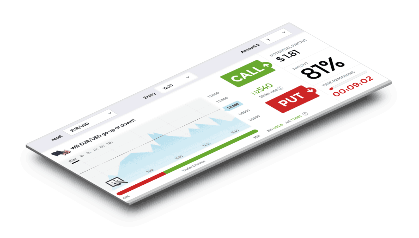 Banc De Binary utilizes its own proprietary trading platform. The trading system is very intuitive with clear tabs that relocate traders along smoothly so they can easily pick any of the tradable properties such as currencies, commodities and indices and decide which readily available trading style is suitable for their trade.